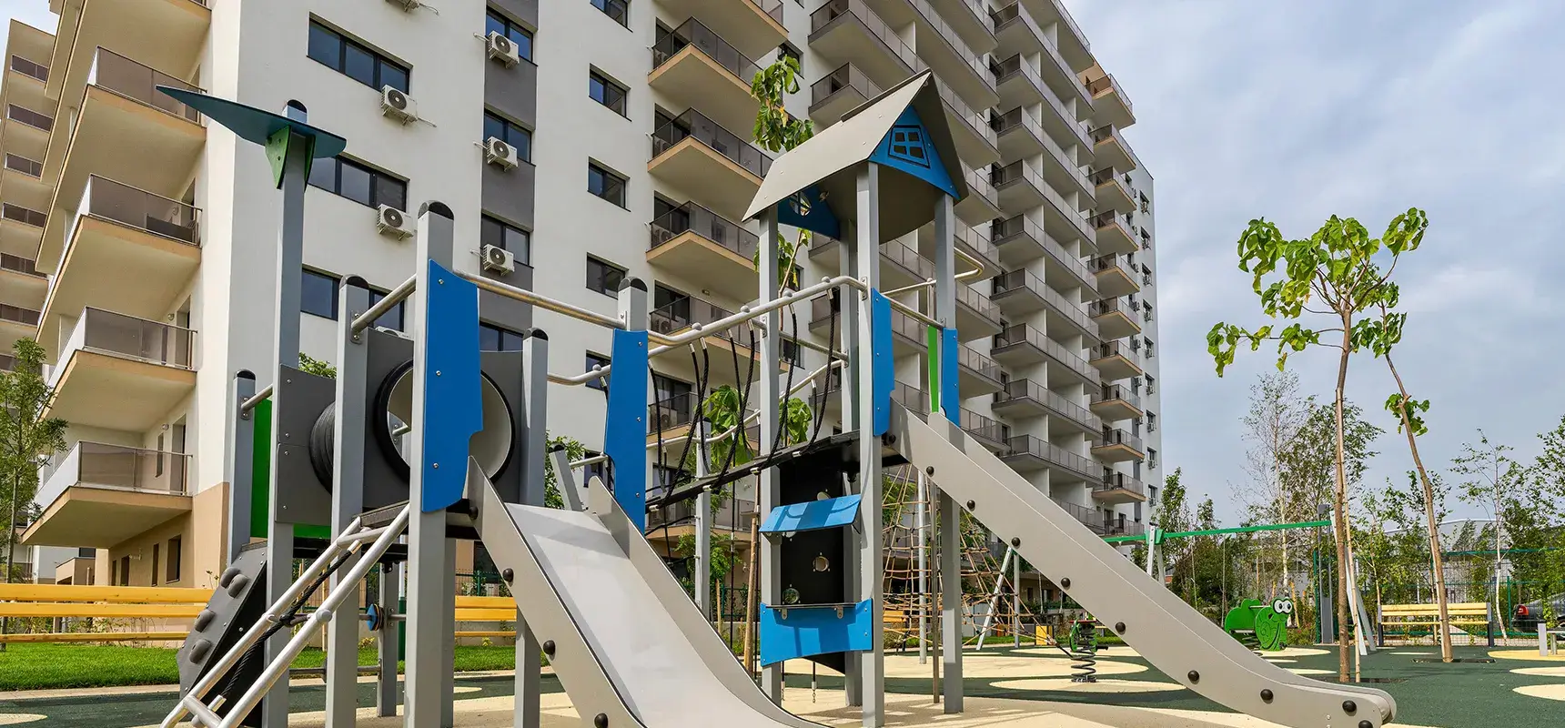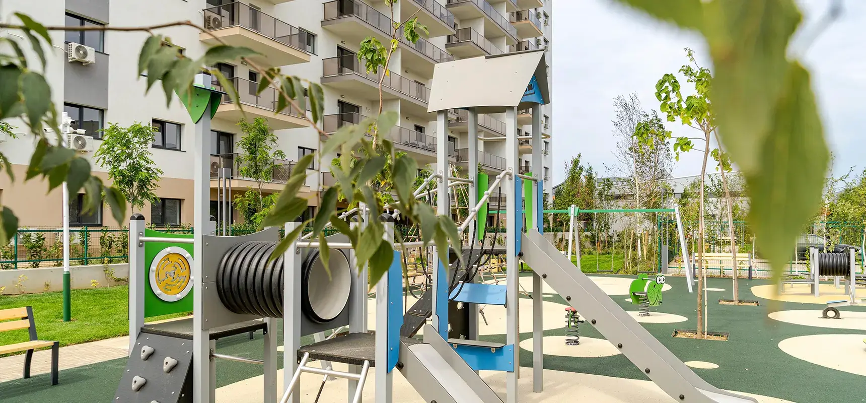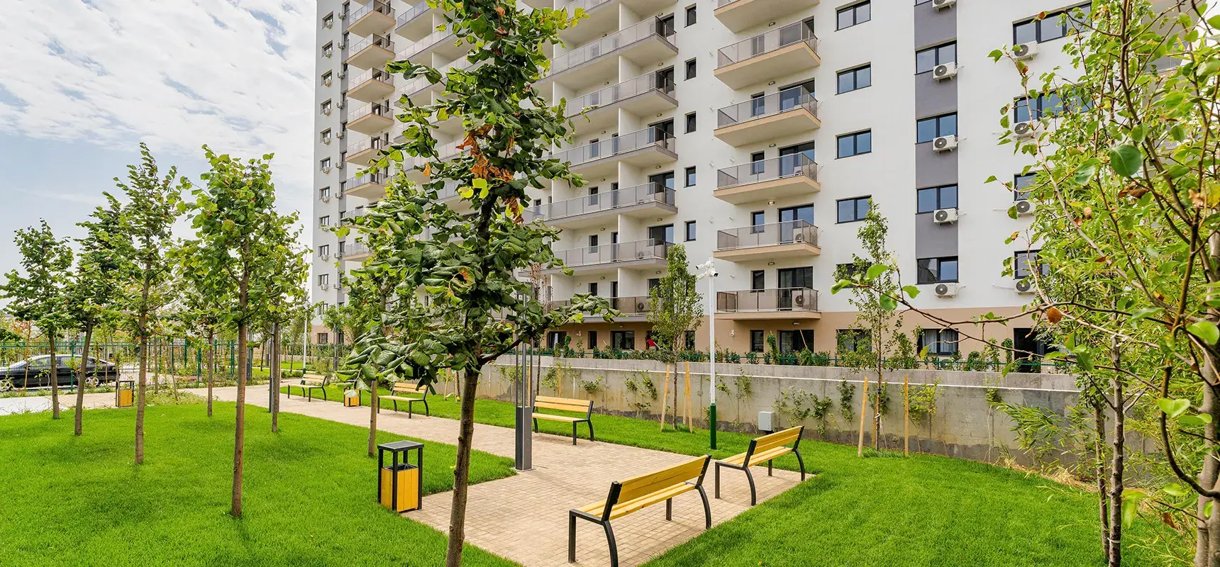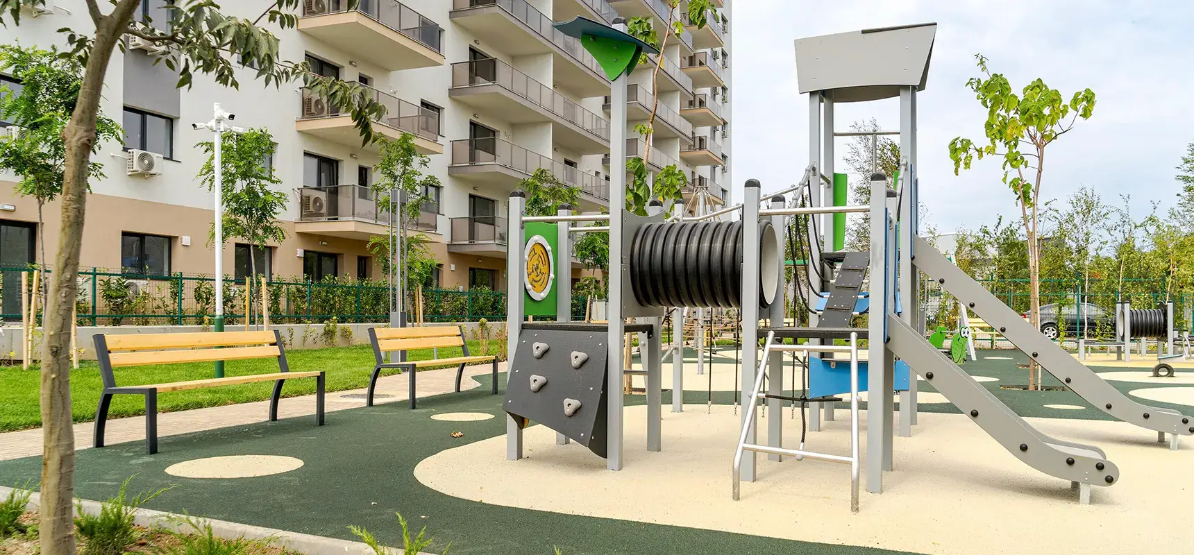 Bucură-te de apartamente cu ferestre mari și luminoase, de spații verzi și zone pentru relaxare cu mobilier adecvat, dar și de un loc de joacă pentru copii.