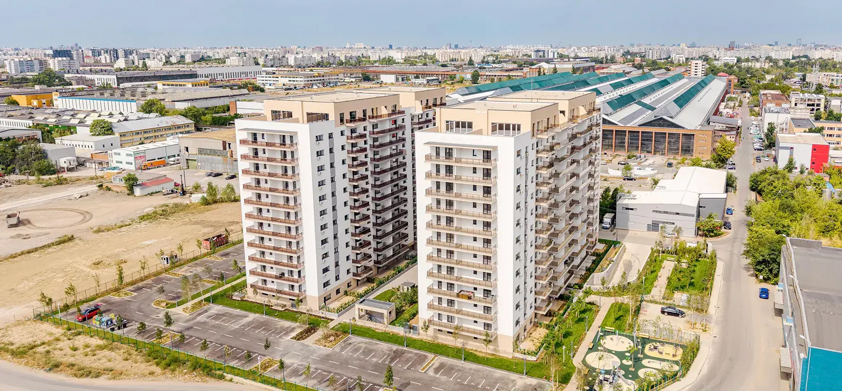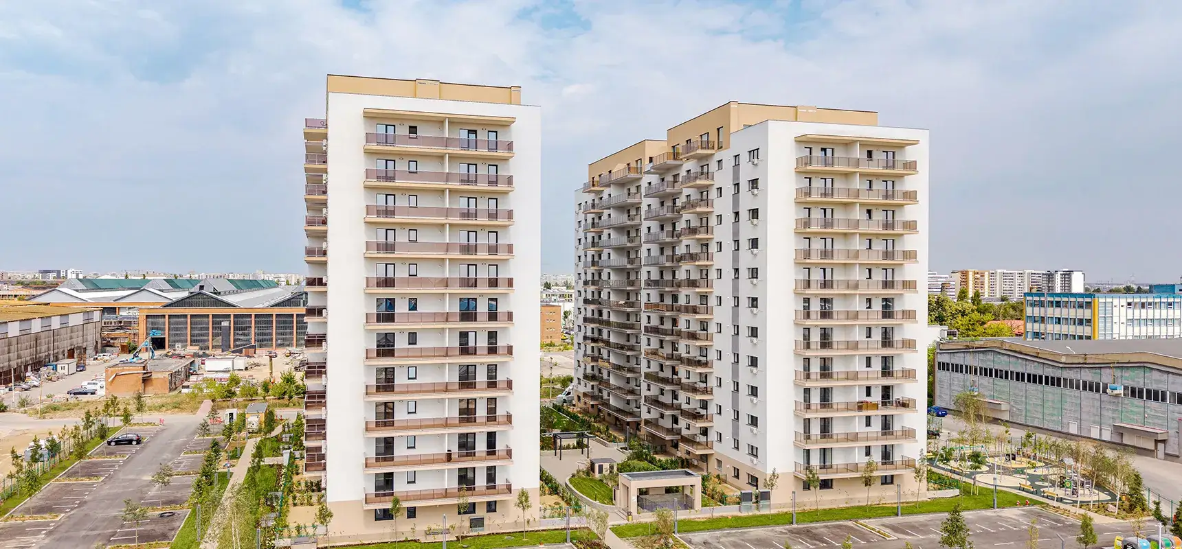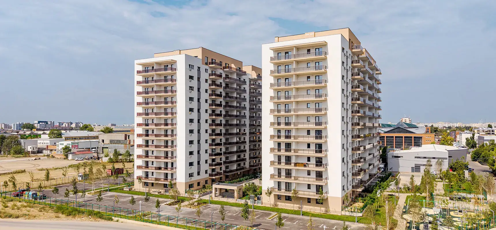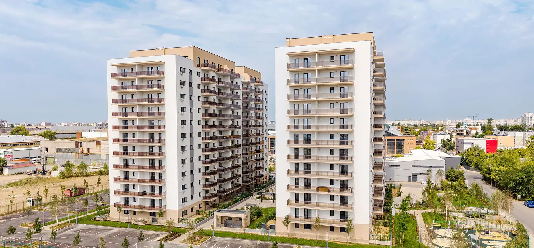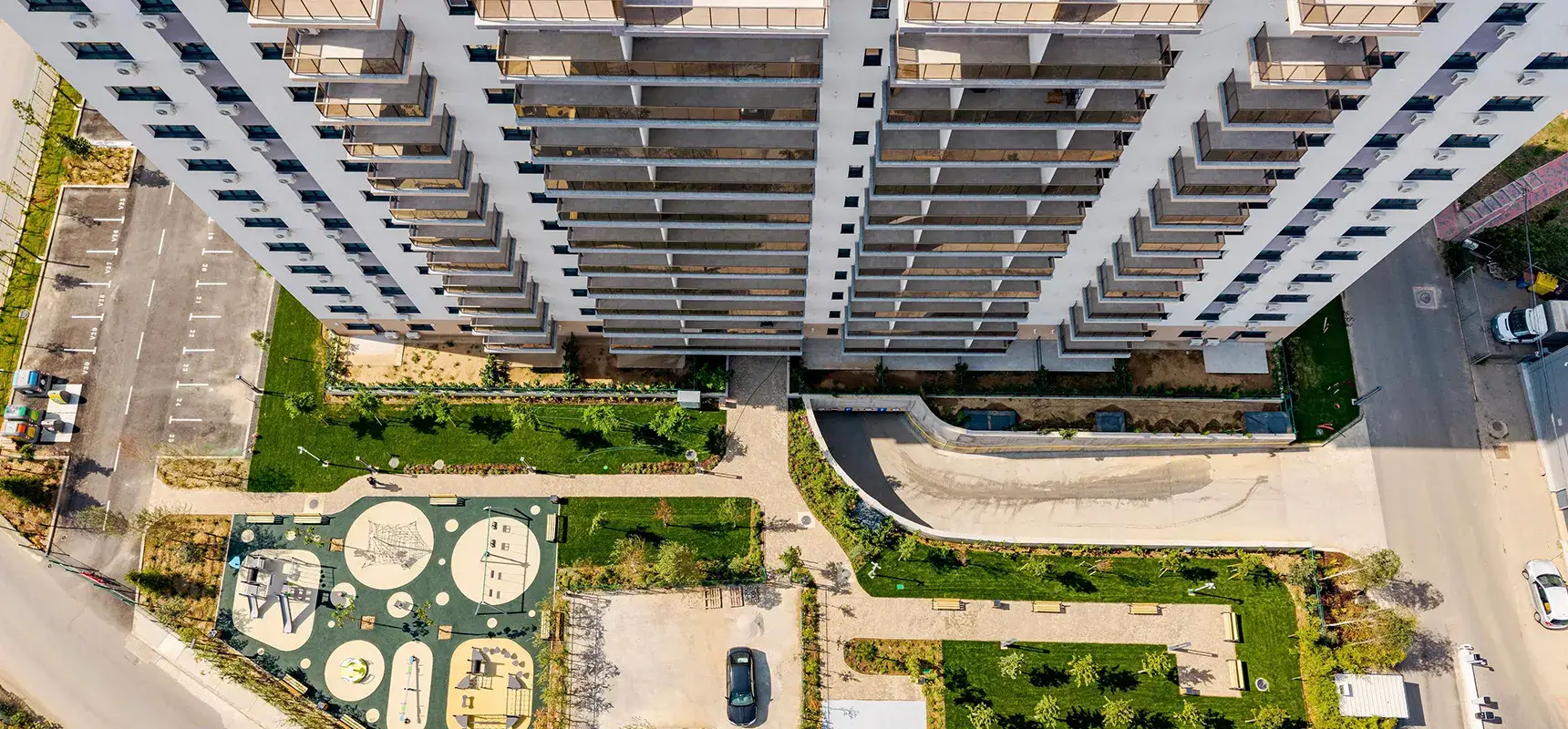 Bucură-te de apartamente cu ferestre mari și luminoase, de spații verzi și zone pentru relaxare cu mobilier adecvat, dar și de un loc de joacă pentru copii.